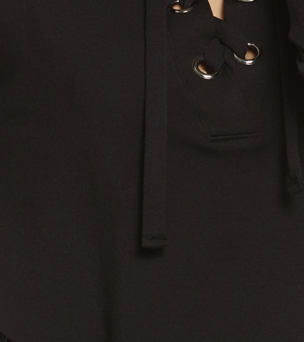 - Lace-up neckline with large silver grommets.