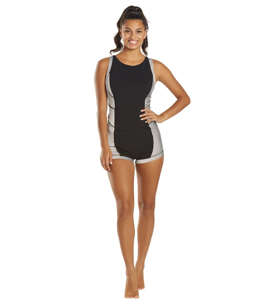 Gymnastics not required: the Free People Hardio Cardio Shortsie is a retro romper featuring colorblock and ribbed detailing.