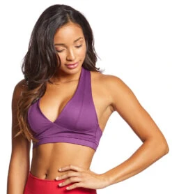 Allow this Mika Yoga Wear Genna Yoga Bra bring out your flirty, feminine side. Constructed with a deep-v and halter style, this supportive sports bra features a delicate strappy back that fans out for a flattering silhouette that will make heads turn.