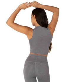 Beyond Yoga Heather Rib Square Neck Cropped Yoga Tank Top Gray Heather