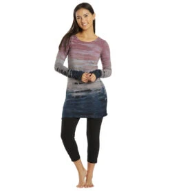 Hard Tail Long Sleeve Skinny Yoga Tee Rainbow Horizon Pink Peach Navy
