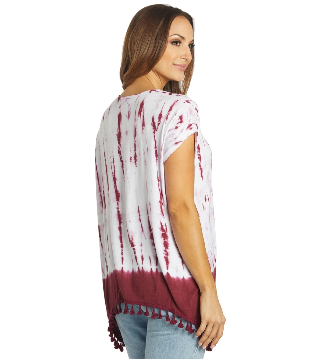 Tie dye and tassels meet in the Yak & Yeti Gypsy Tie Dye Tassel Hem Tee for a trendy bohemian look.